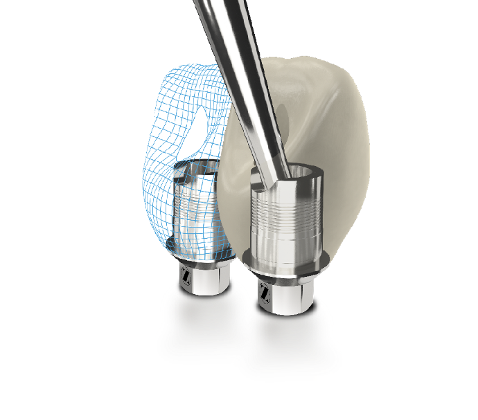 Allows the screwdriver access channel to be angled up to 30 degrees off the implant axis. The screwdriver access channel is smaller diameter than the screw head diameter, therefore the screw is captured in the abutment/crown after cementation and should not be removed after the extraoral cementation.